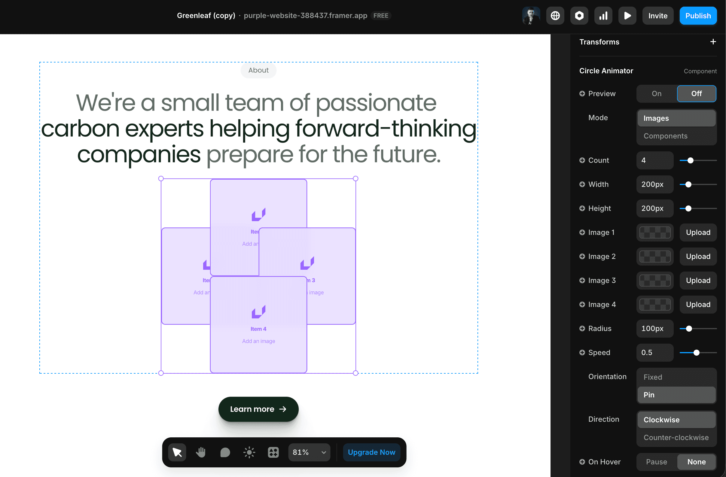 O componente Circle Animator é a prova de que animações avançadas no Framer não precisam ser complexas. Em poucos minutos, você transforma uma lista estática de logos ou depoimentos em um elemento visual magnético.