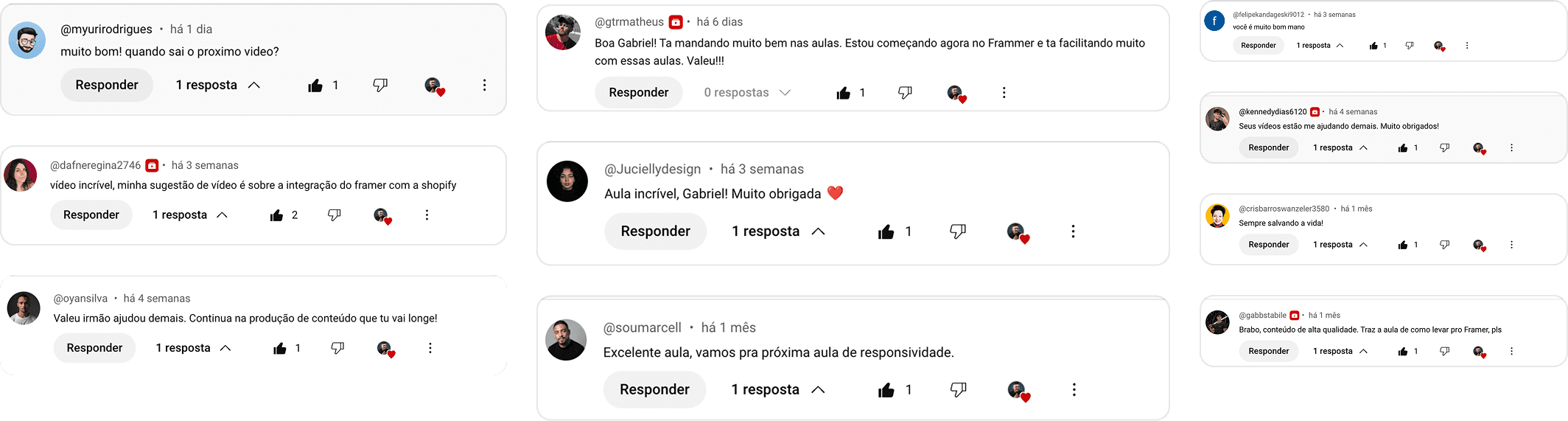 O Creative Framer foi pensado para ser muito mais que um curso. É uma comunidade criada para que você não se sinta mais perdido ou sozinho - afinal, eu sei bem como essa jornada pode ser “solitária”. Aqui vamos unir aprendizado prático e networking para acelerar sua carreira e resultados.